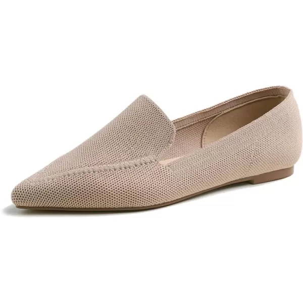 FEVERSOLE Women’s Woven Pointy Fashion Cutouts Breathable Knit Flat Shoes(Khaki Pointed Knit)