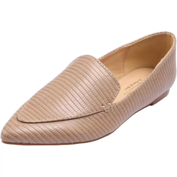 FEVERSOLE Women’s Loafer Flat Pointed Fashion Slip On Comfort Driving Office Shoes(Lizard Pu Taupe)