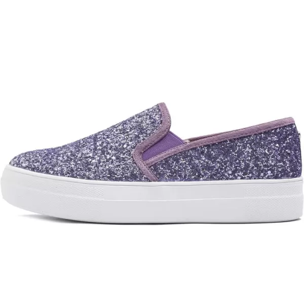 FEVERSOLE Women’s Fashion Slip On Sneaker Casual Platform Loafers(Platform Lavender Glitter)