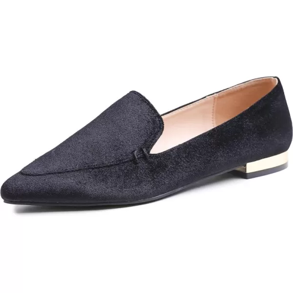 FEVERSOLE Women’s Loafer Flat Pointed Deco Low Heel Fashion Slip On Dress Driving Office Shoes(Black Velvet)