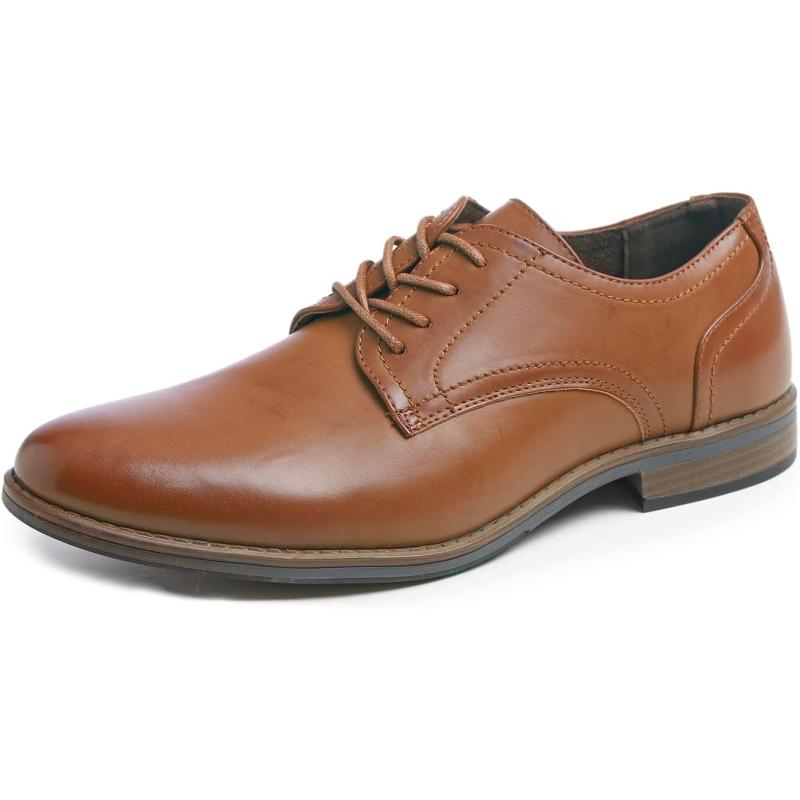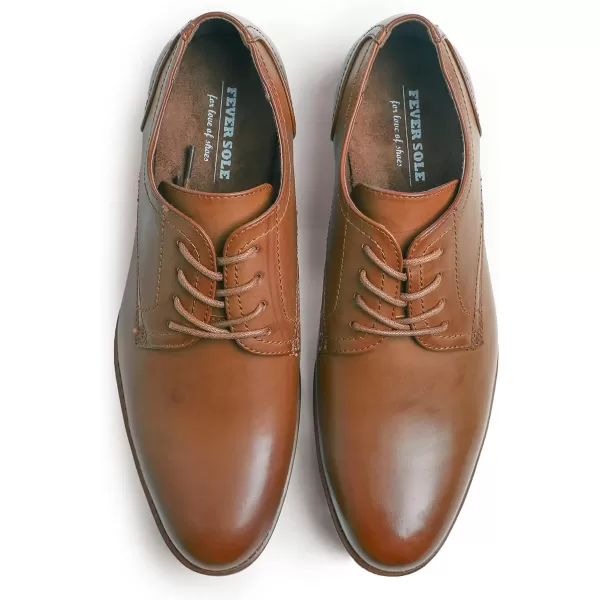 FEVERSOLE Men’s Classic Dress Oxford Vegan Leather Casual Derby Shoes(Camel Plain Derby)