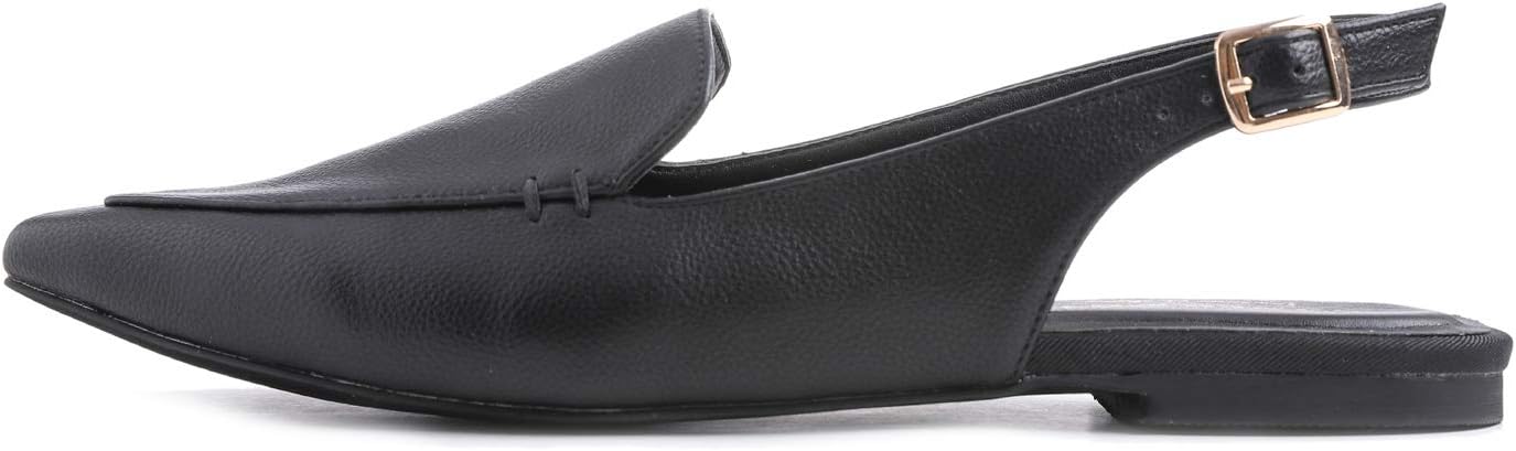 Don’t miss out on our limited-time offer: get a free {accessory} with your purchase of FEVERSOLE Pointed Toe Casual Slingback Flat Mules Women’s Fashion Buckle Strap Slide Summer Slippers(Black Grain Pu).