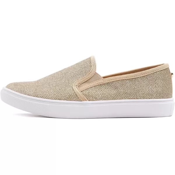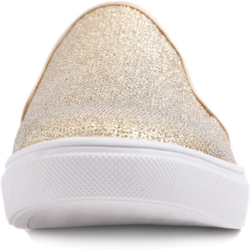 FEVERSOLE Women’s Fashion Dress Sneakers Party Bling Casual Flats Embellished Shoes(Gold Lurex)