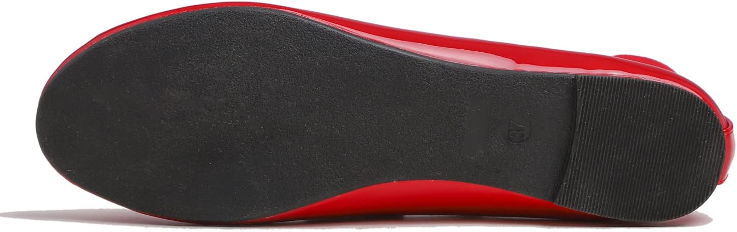FEVERSOLE Women’s Fashion Elastic Ankle Strap Shoes Round Toe Ballet Flat(Red Patent Ankle Strap)