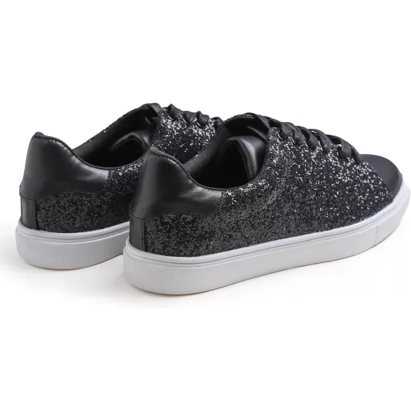 FEVERSOLE Women’s Fashion Lace Up Dress Sneakers Sparkly Party Shiny Shoes(Black Glitter Laceup 1405)