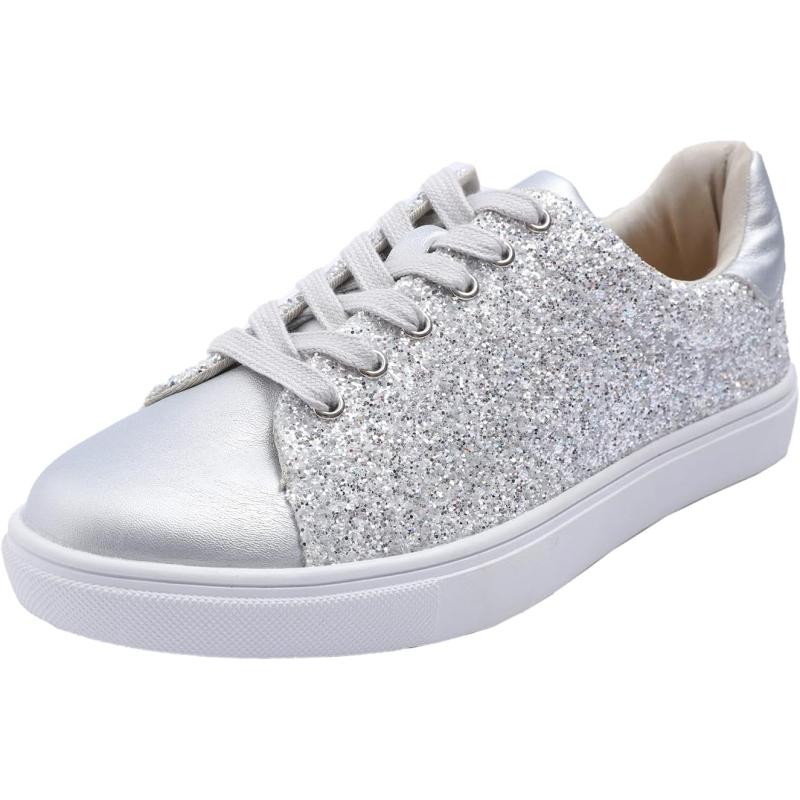 FEVERSOLE Women’s Fashion Lace Up Dress Sneakers Sparkly Party Shiny Shoes(Ice Silver Glitter Laceup 1405)