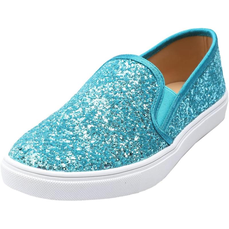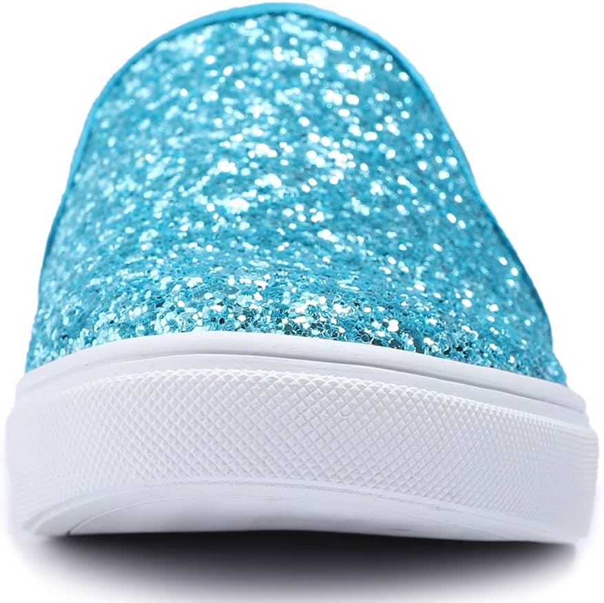 FEVERSOLE Women’s Fashion Slip-On Sneaker Casual Flat Loafers(Turquoise Glitter)