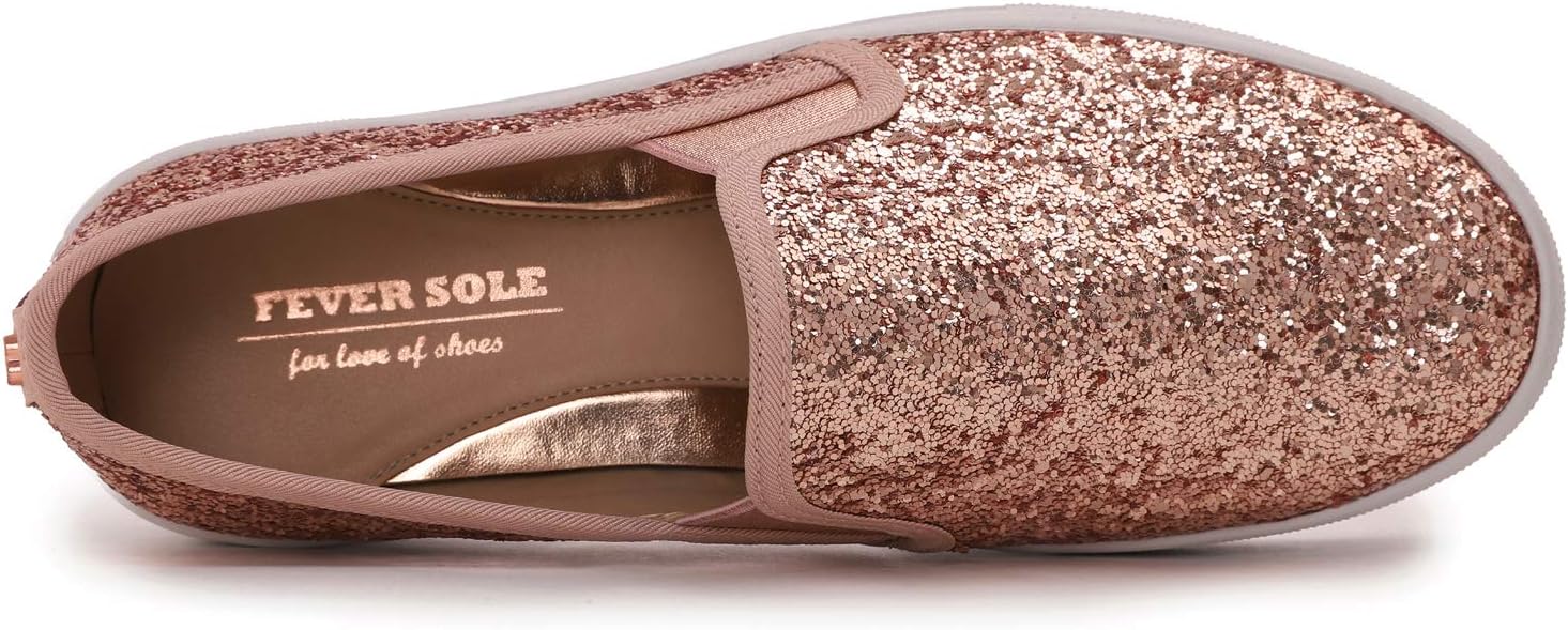 Get your hands on our exclusive FEVERSOLE Women’s Fashion Slip On Sneaker Casual Platform Loafers(Platform Rose Gold Glitter) collection, now at a discounted price.