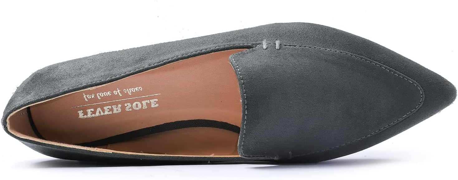 FEVERSOLE Women’s Loafer Flat Pointed Fashion Slip On Comfort Driving Office Shoes(Faux Suede Dark Grey)