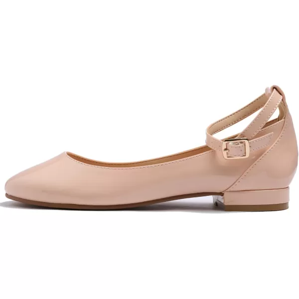 FEVERSOLE Women’s Mary Jane Fashion Round Toe Easy Buckle Slip On Flats(Ankle Strap Pink Patent Flat Heel)