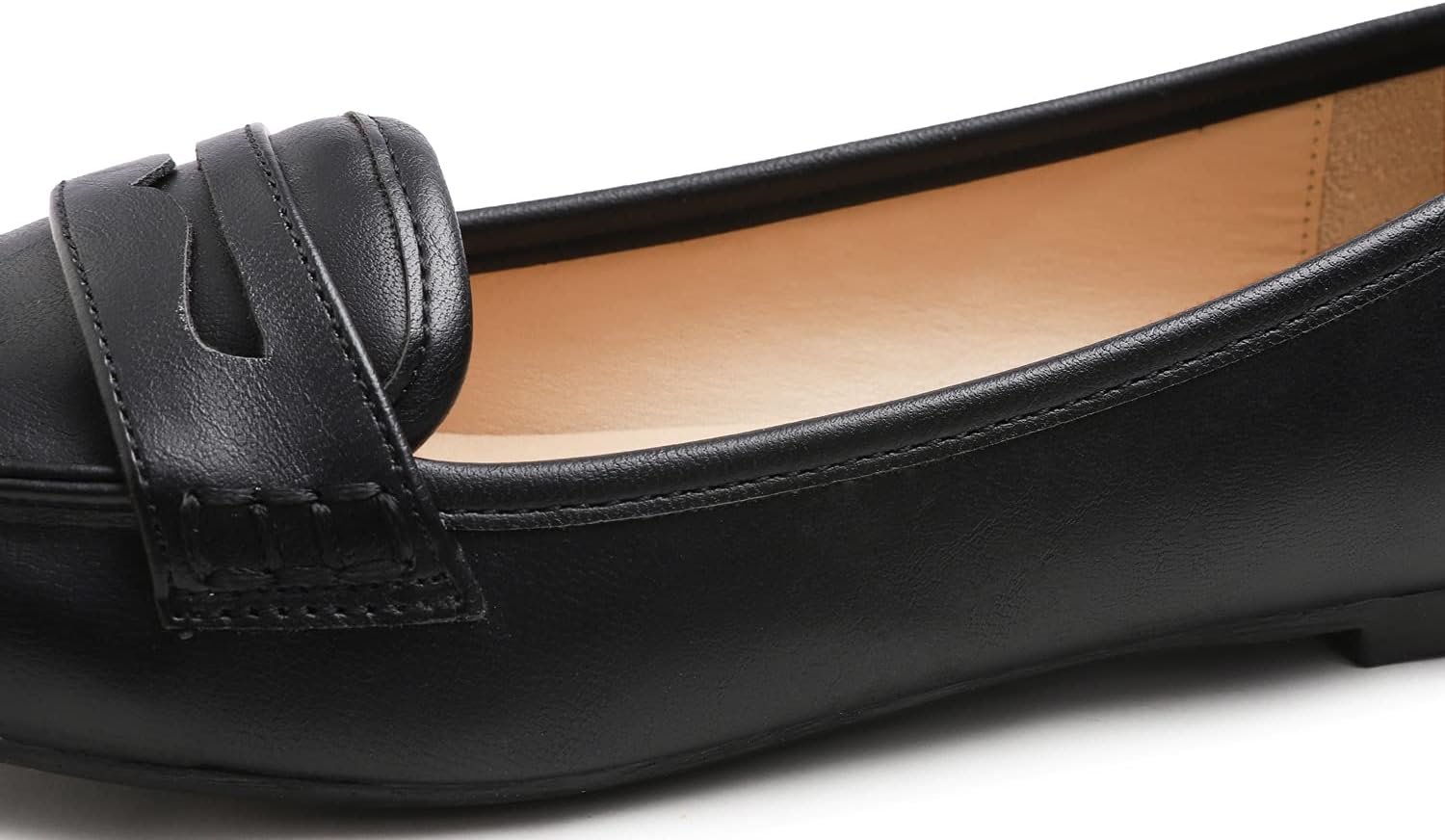 FEVERSOLE Women’s Penny Loafer Round Toe Casual Flat Shoes(Black Plain Pu Penny)