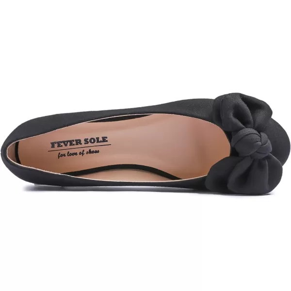 Feversole Women’s Round Toe Cute Bow Trim Ballet Flats(Black Jersey Twist Bow)