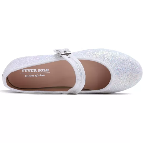 FEVERSOLE Women’s Soft Cushion Extra Padded Comfort Round Toe Mary Jane Metal Buckle Fashion Ballet Flats Walking Shoes(White Glitter Mary Jane)