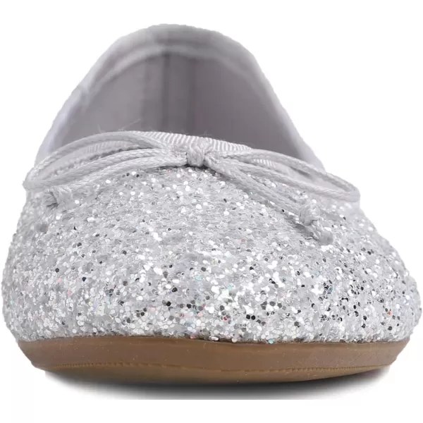 FEVERSOLE Women’s Sparkle Memory Foam Cushioned Colorful Shiny Ballet Flats Glitter(Glitter Ice Silver)