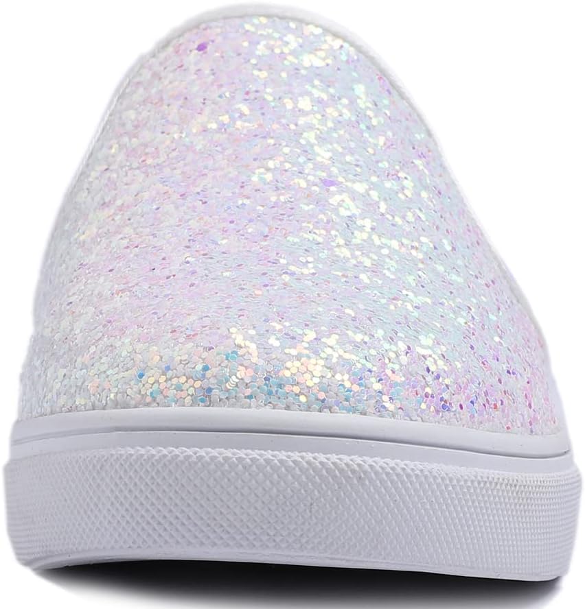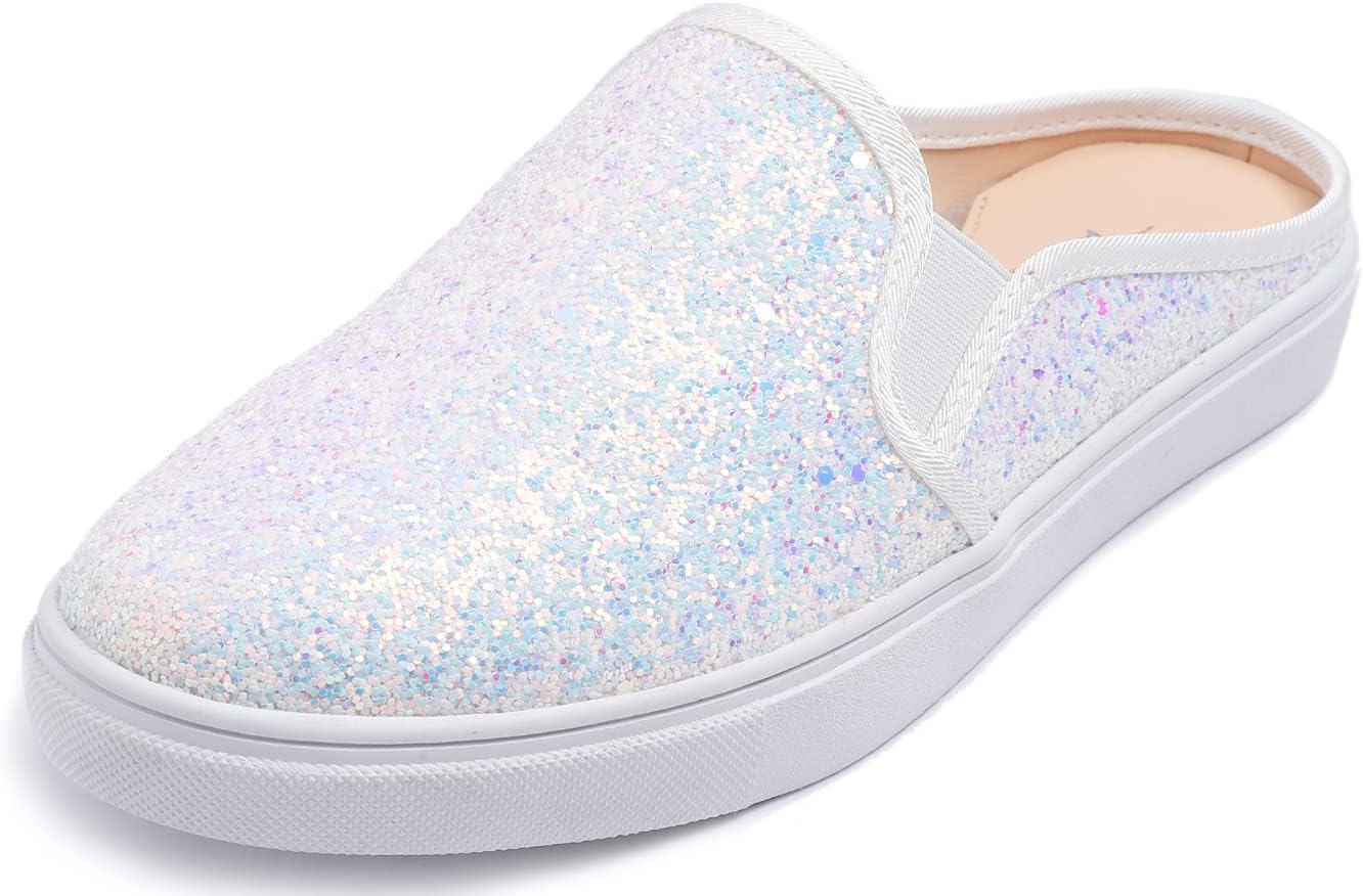 FEVERSOLE Women’s Sport Mules Slip On Loafers Fashion Backless Sneakers(White Glitter)