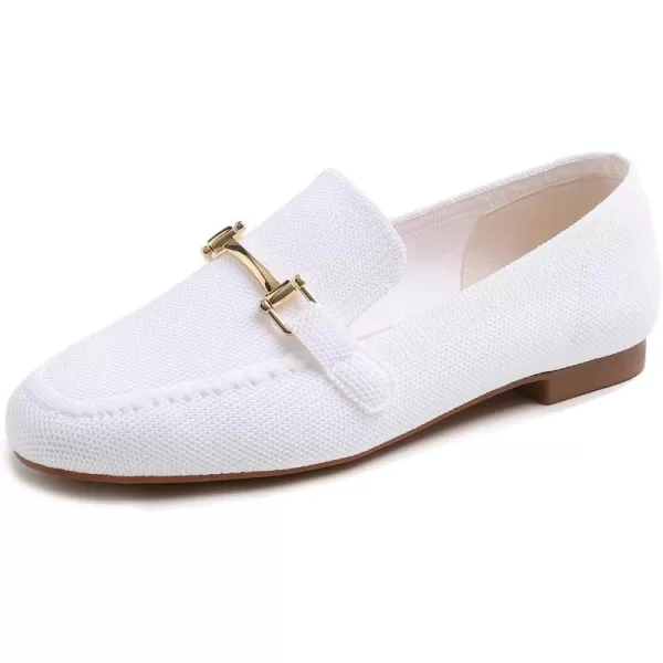 Feversole Women’s Woven Fashion Breathable Knit Flat Shoes(White Loafer Knit)